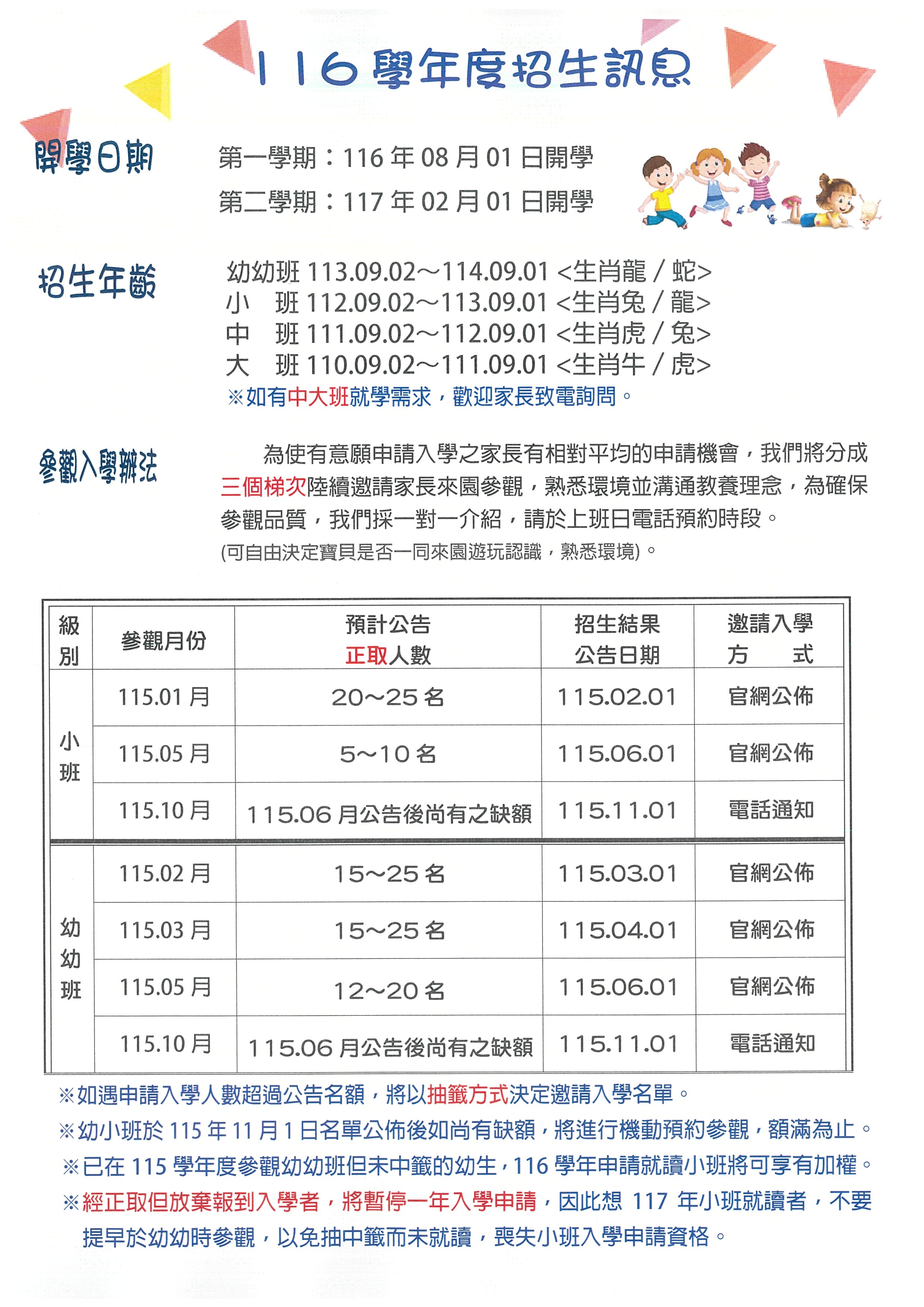116學年度招生訊息
